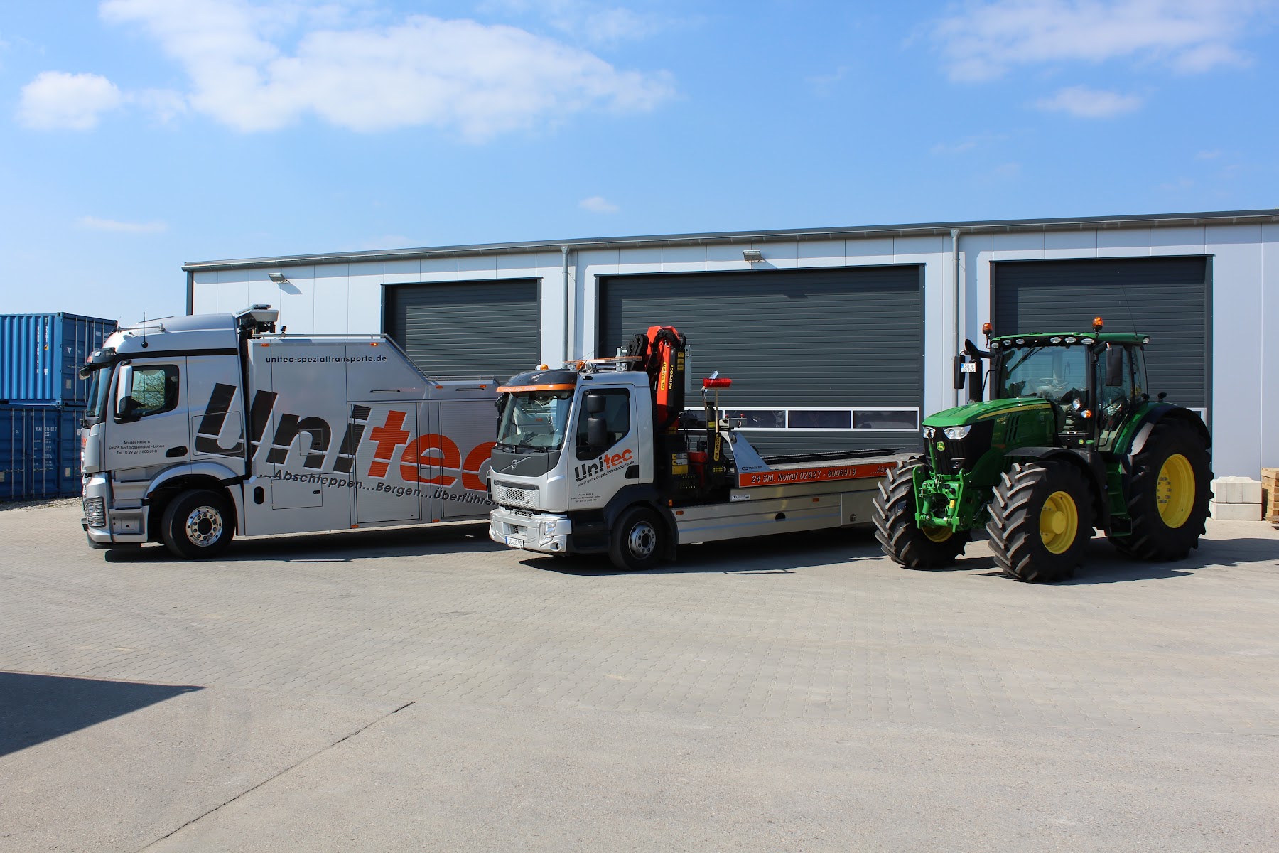 Zudem sind wir Ihr Partner für Transportdienstleistungen, Großraum- & Schwertransporte, Kranarbeiten, Containerhandel und Containervermietung, Sondercontainerbau und Paterrearbeiten.