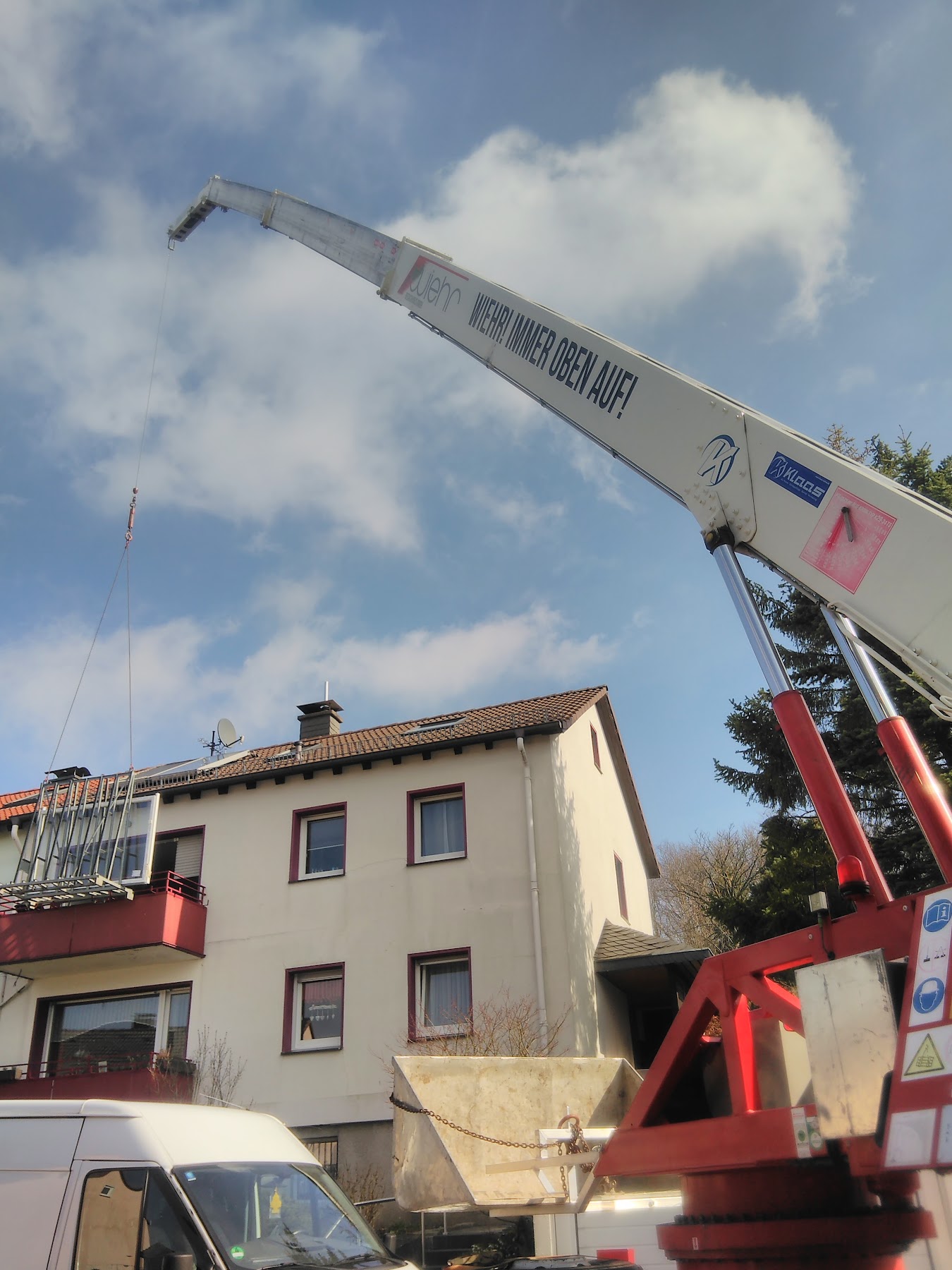 Möglich macht dies auch unser eigener Kran, mit dem wir insgesamt schneller und zielgerichteter vorgehen können. Wir decken Ihr Haus mit den unterschiedlichsten Dächern und sorgen für eine gute Dämmung und Beschichtung.