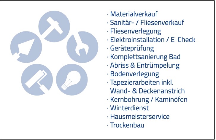 Verlegungen und Verkauf von Fliesen sowie Verkauf von Bodenbelägen