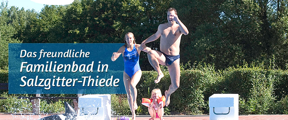Sie sind auf der Suche nach einem Hallenbad / Freibad, das für jeden Anspruch und jede Altersklasse das richtige Angebot hat? Wenn Sie das Element Wasser erleben wollen, kommen Sie in unser Familienbad nach Salzgitter-Thiede. Im Sommer können Sie sich zusätzlich zum Hallenbad mit seinen 25 m Bahnen und dem Panorama mit einem schönen Ausblick auf den Mühlenteich auf das Freibad mit großem Nichtschwimmer- und Schwimmbecken freuen.