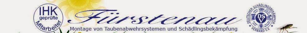 Als Schädlingsbekämpfer und Spezialist für die Taubenabwehr hat das Unternehmen Fürstenau in Berlin bereits seit über 25 Jahren Erfahrung. Für die professionelle Hygiene- und Qualitätssicherung im Bereich Tauben und Schädlinge stehen Ihnen bei uns ausschließlich ausgebildete und von der IHK geprüfte Techniker und Schädlingsbekämpfer zur Verfügung. Im Bereich Taubenabwehr arbeiten wir darüber hinaus mit Hebebühnen, Rüstungen, Rüstungen auf Lore, alpiner Abseiltechnik und zu Wasser mit Pontons.